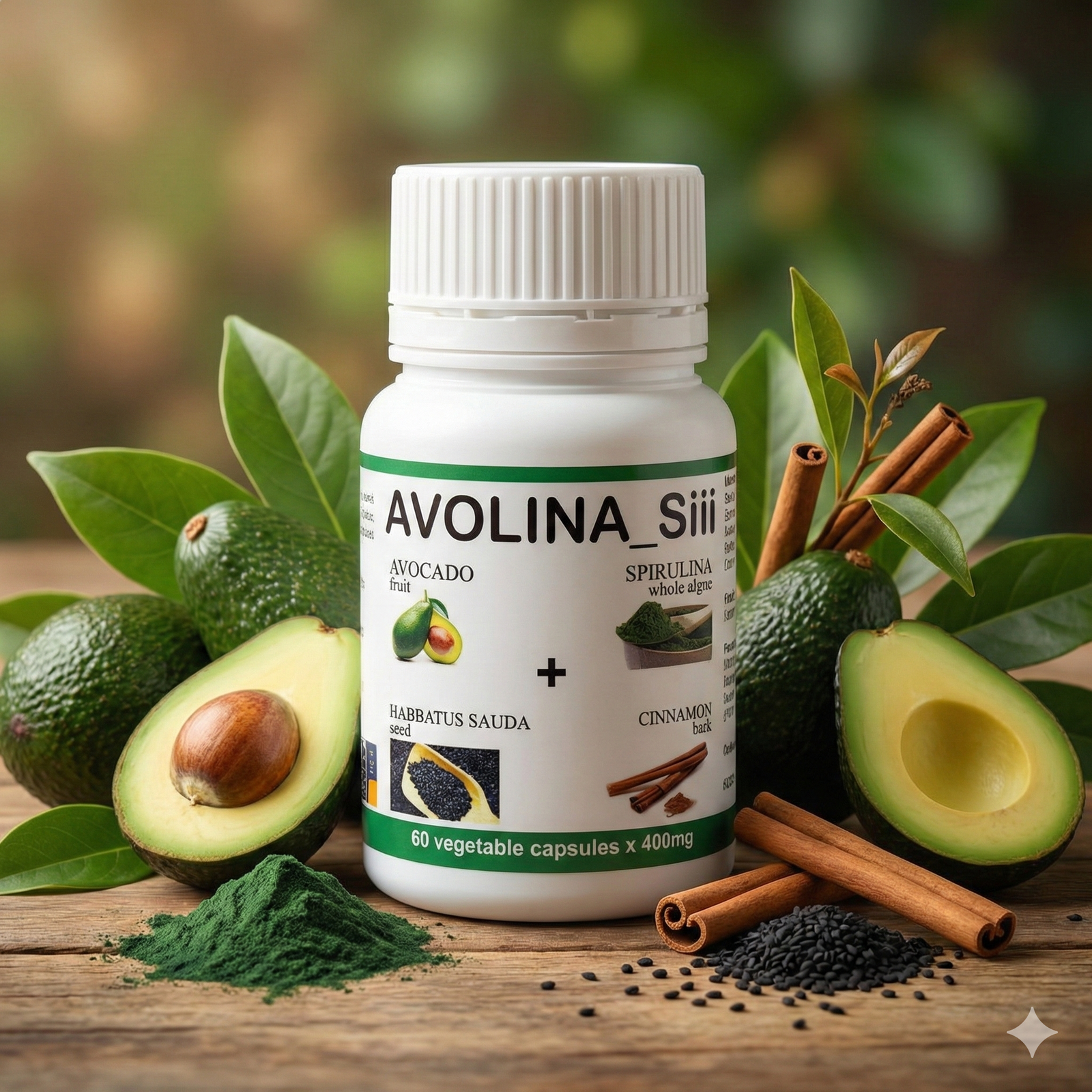 Experience the combined power of organic Avocado, Spirulina, Habbatus Sauda, and Cinnamon in one convenient capsule. AVOLINA Siii is a 100% natural supplement designed to boost your immune system, relieve joint pain, and support long-term health from the cellular level.